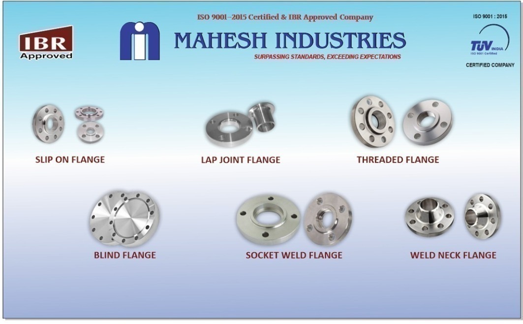 Mahesh Industries manufactures both types along with blind, threaded, socket weld, lap joint, long weld neck and reducing flanges. These flanges are available in stainless steel, carbon steel, alloy steel, A105 forged grades, MS IS 2062 and ASTM standards to cover diverse project environments. Customers comparing “slip on flange price,” “weld neck flange dimension,” and “pipe flange types” benefit from the comprehensive product basket. Options for raised face, flat face and ring type joint faces ensure sealing compatibility with gaskets and process conditions. Standards supported include ANSI, ASME, DIN, PN rated, BS 10 tables and ASA series. IBR approved and NON IBR flanges are available for boiler and non-boiler applications, making sourcing centralized. These flanges are widely used in refinery lines, compressed air systems, fire protection networks, cooling water lines and general fabrication. If you are planning maintenance, expansion, or new plant installation and need dependable slip on or weld neck flanges, call or visit us in Navi Mumbai for more details.